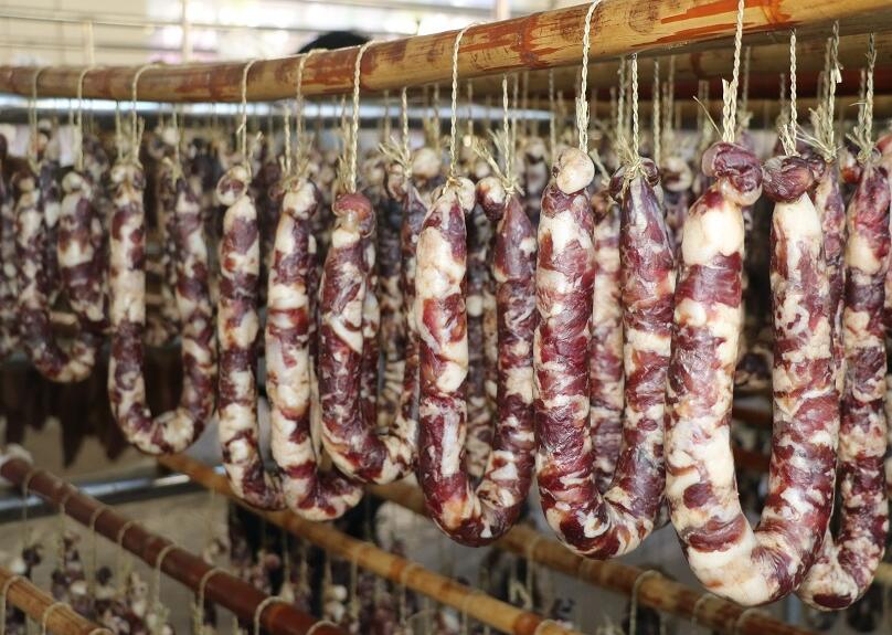 北风起,食腊味。虽然现在交通便利,全国各地各种口味的腊味都会出现在市场上,但云南省玉溪市的华宁人最钟情的还是当地最传统的五香腊肉、麻香香肠。