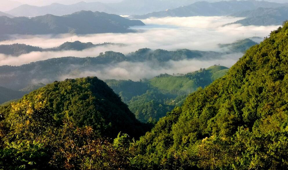 初秋时节的清晨,笔者一行攀登云南省曲靖市师宗县五龙壮族乡的南丹山。一路陡坡,行至半山,只见云海弥漫、群山匍匐、雾气缥缈、山峦隐约,宛如置身仙境。